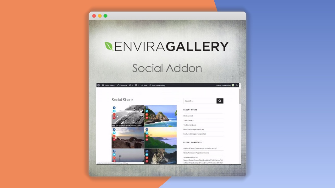 ¿Qué hace Envira Gallery – Social Addon? Permite a los visitantes compartir fácilmente las imágenes y galerías de tu sitio web de WordPress en redes sociales populares, aumentando así el alcance y la viralidad de tu contenido. Este potente módulo para Envira Gallery no solo mejora la interacción de tu audiencia, sino que también impulsa el tráfico hacia tu sitio al facilitar que otros difundan tus creaciones visuales.